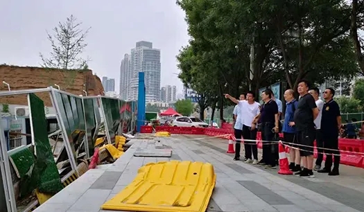 汛情緊急,快速應對力保平安。公司黨支部書記、執行董事、總經理趙佳佳對于防汛工作作出工作部署,工程管理部即時啟動24小時項目值守,扎實做好暴雨防御、隱患排查、雨水倒灌、排水等各項工作,全力保障工程安全。7月22日,公司總經理趙佳佳、副總經理郭燦帶隊在健康城項目所有標段進行災后安全隱患巡查。