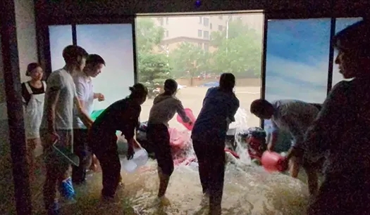 為盡快堵住倒灌的洪水大家群策群力,有的員工沖進大雨中尋找沙袋堵水;有的員工往高處搶搬辦公設施或盡量抬高,盡量避免雨水浸泡;有的員工毫不猶豫的將自己的毛毯棉被拿出來去堵水,有的員工立即抄起舀水的工具參加到抗擊水患、保衛公司的戰斗中。大家爭先恐后唯恐不能為公司出力,在大門前站不下太多人往外潑水的情況下,身單力小的員工主動一桶一桶從后門往外提水,為我們的公司少受些損失而默默的奉獻著。